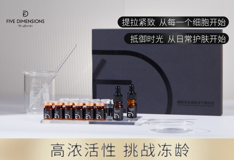 防老抗衰是个长期工程,五维时空FiveDimensions臻颜多肽紧致冻干精华添加依克多因、麦角硫因、松蕈提取物、谷胱甘肽、六肽-1等硬核抗老成分,长期使用,可以紧致肌肤,减少皱纹的产生。