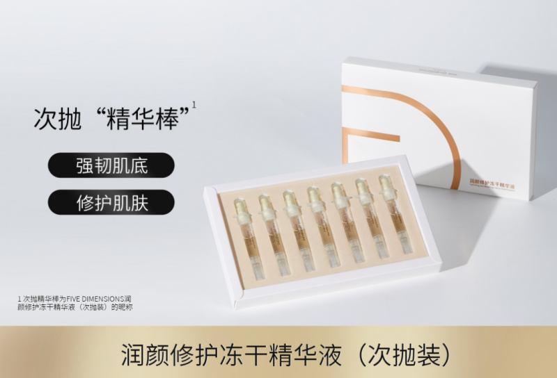 五维时空FiveDimensions次抛精华就能很好的抚平皮肤的“小脾气”。别看只有小小的一支,其中含有动物脐带提取物、鼠李糖、谷胱甘肽、油橄榄叶精粹等成分,能够有效焕发肌肤维稳力,拥有强大修护效果。