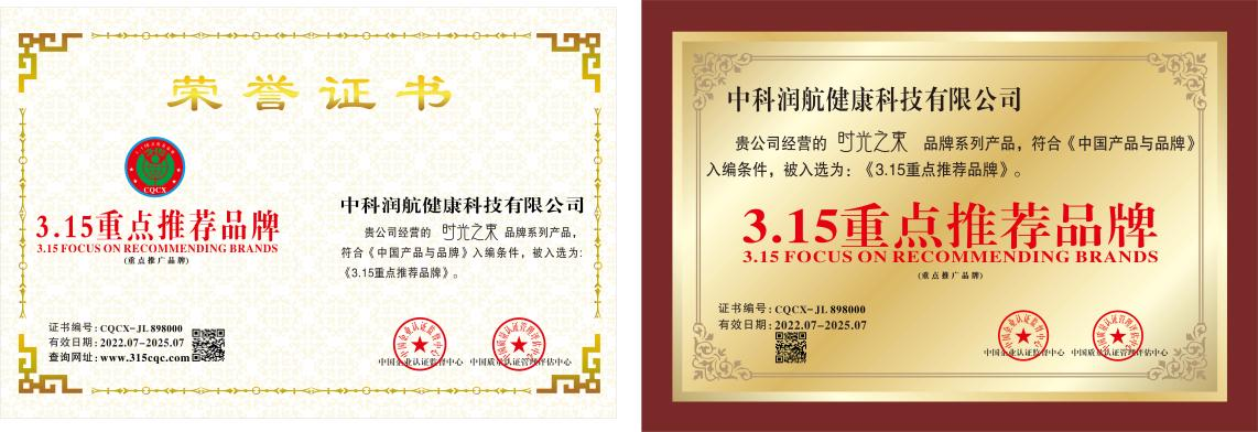 中科润航旗下“时光之束”品牌荣获3.15重点推荐品牌