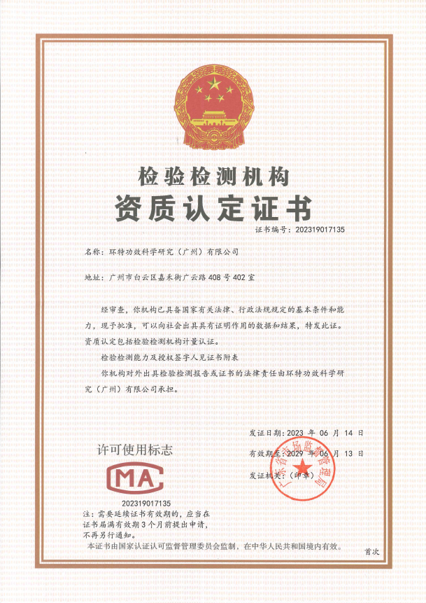 这是环特生物继获得CMA、CNAS认定资质之外,首次通过人体功效评价项目CMA资质认定,获得国家认证认可监督管理委员会颁发的“检验检测机构资质认定证书”,标志着环特生物正式成为化妆品人体功效评价和检测市场准入许可的检验检测机构,具备第三方检测资质与能力,在化妆品功效及安全性评价领域的业务布局与服务能力更加完备!