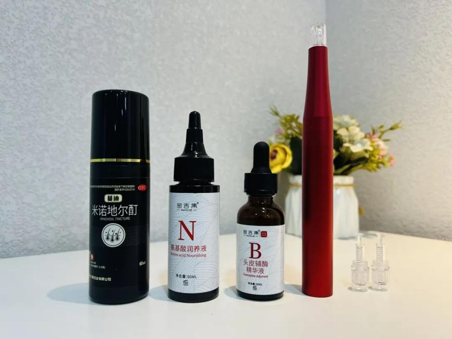 密吉集一直致力于帮助密友们更好的防脱生发,为了能让FDA所认证的外用药物——米诺地尔达到更好的生发作用,使米诺从无应答转为有应答,提升米诺见效率,我们选择搭配外用辅酶精华液辅助,也可以选择微针让米诺地尔的吸收更好。